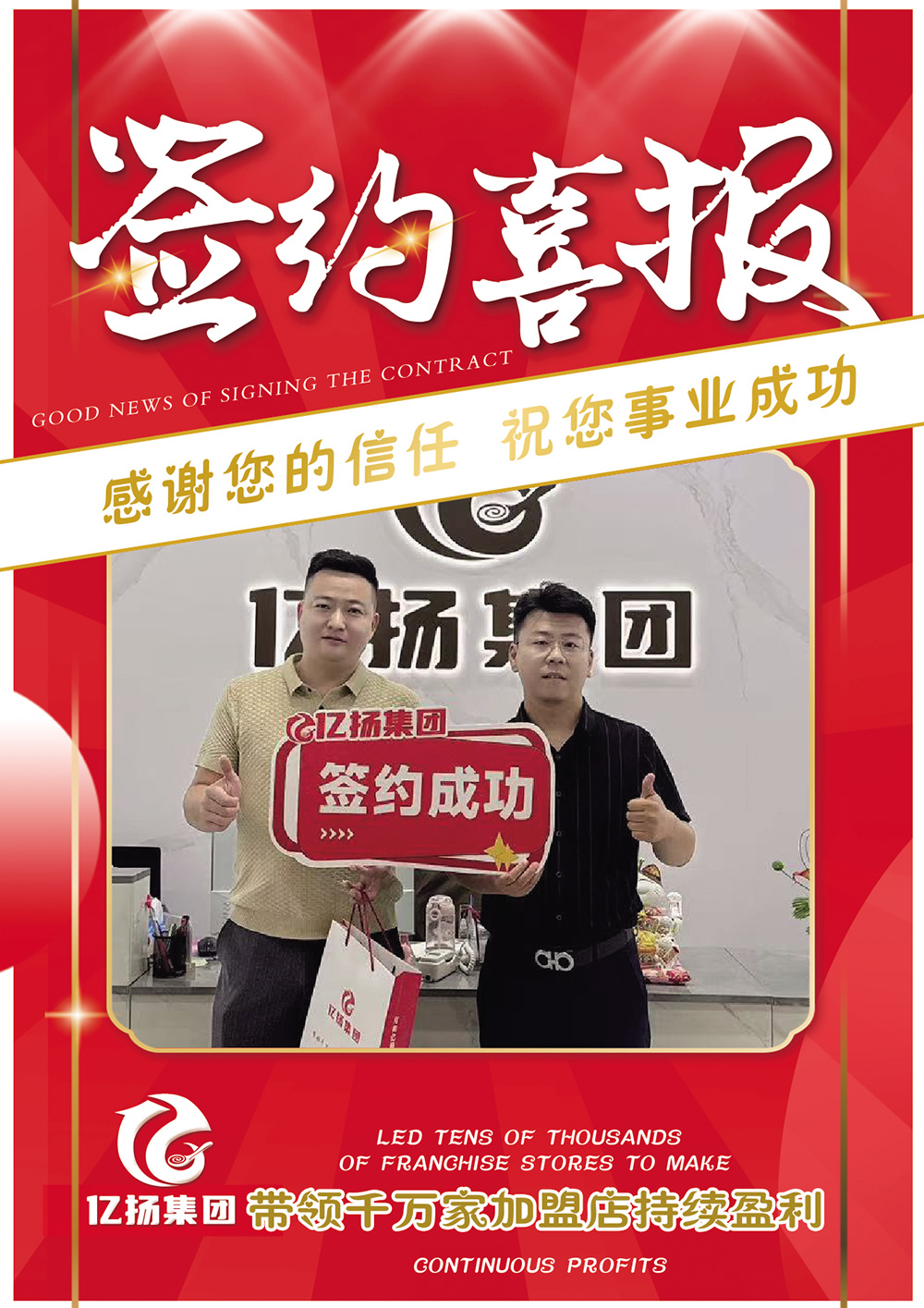 亿扬集团带领千万家加盟店持续盈利,感谢您的信任,祝您事业成功!